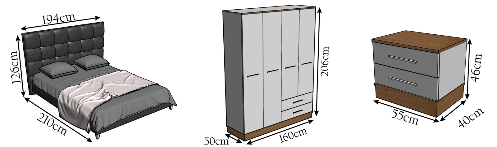 Transform your bedroom into a serene retreat with the Alison Bedroom Set. This set features a spacious 4-door wardrobe, providing ample storage for your clothing and accessories. The bed frame offers a comfortable and stylish foundation for restful nights. With its clean lines and modern design, the Alison set brings a touch of understated elegance to any bedroom. Experience the perfect blend of functionality and contemporary style.