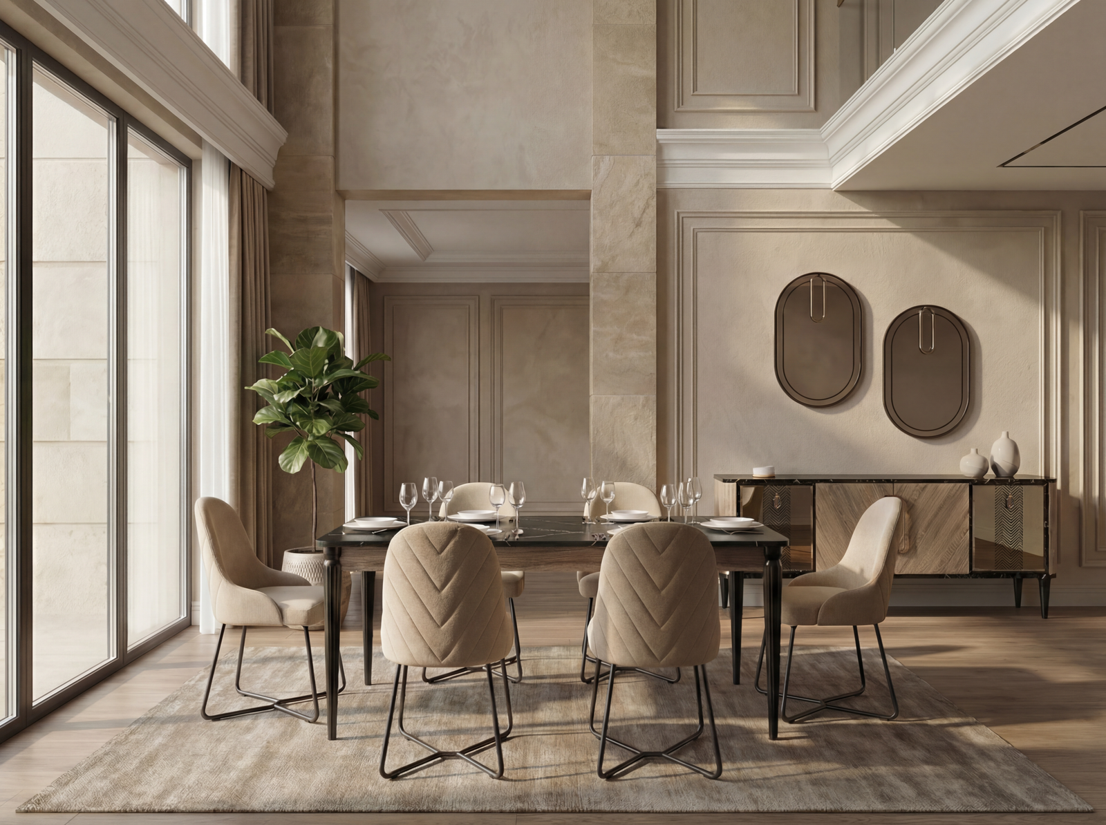 The Dream Dining Set: Modern elegance meets comfortable dining for unforgettable moments.