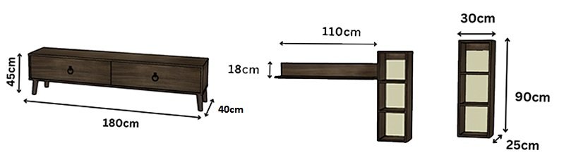 ° Shelf Size: L: 110 cm – W: 18cm – D: 18 cm
