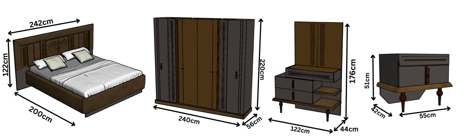 ° Bed Size: L: 200cm – W: 242 cm – H : 122 cm
