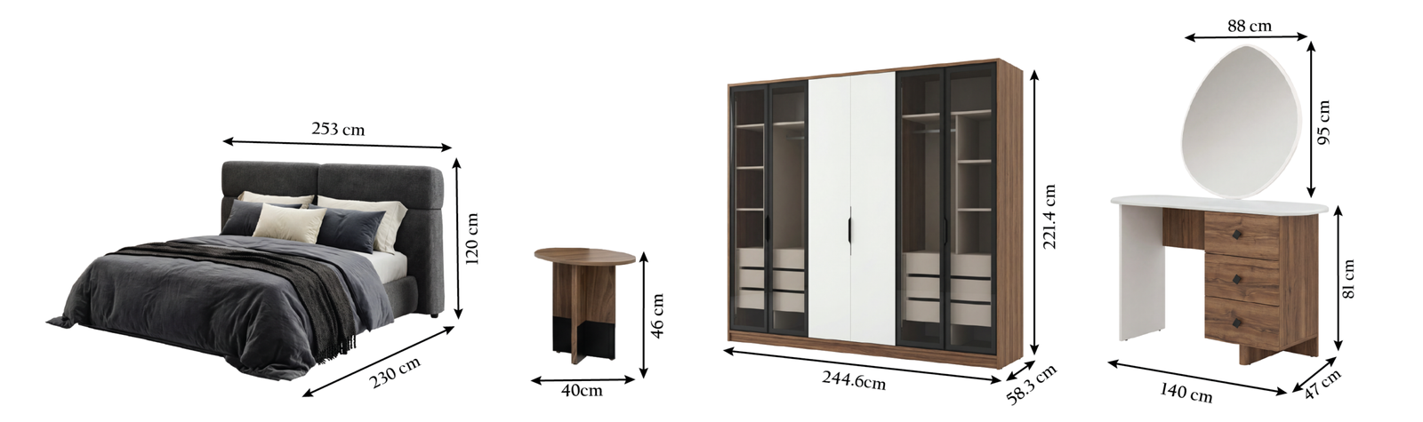 ° Wardrobe Size: L: 244.6 cm – D: 58.3cm – H: 221.4cm