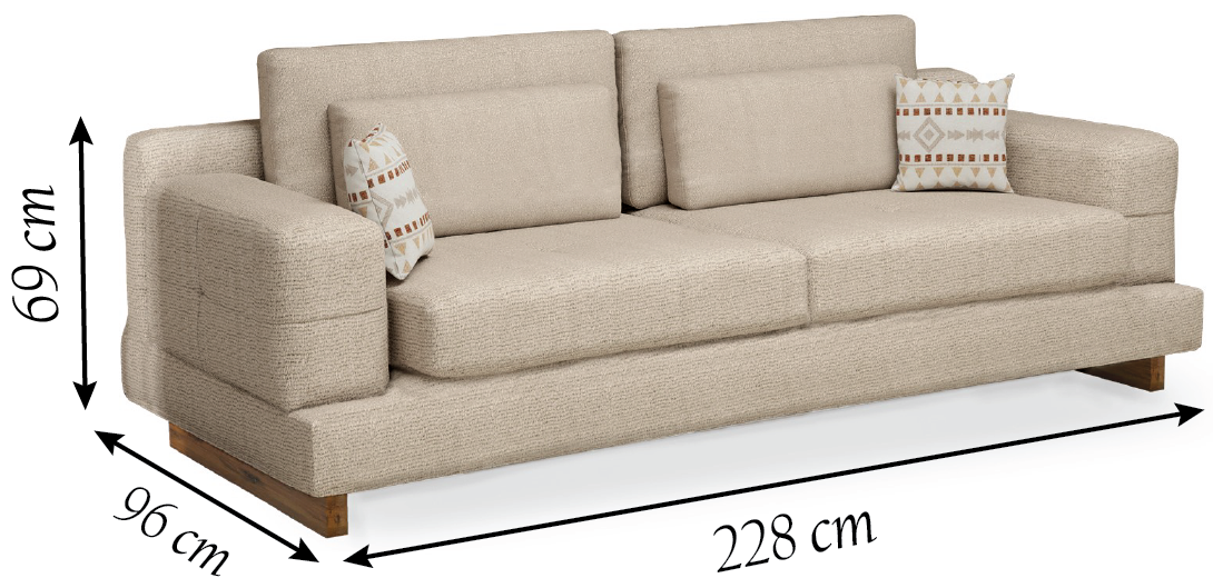 ° L: 228 cm – W: 96 cm – H: 69 cm