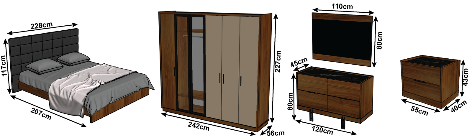 ° Bed Size: W: 228 cm – D: 207 cm – H : 117 cm