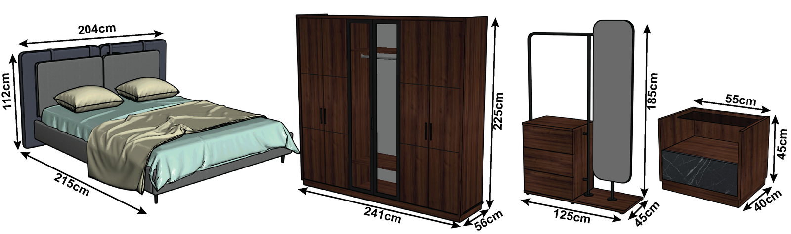 ° Bed Size: W: 204 cm – D: 215 cm – H : 112 cm