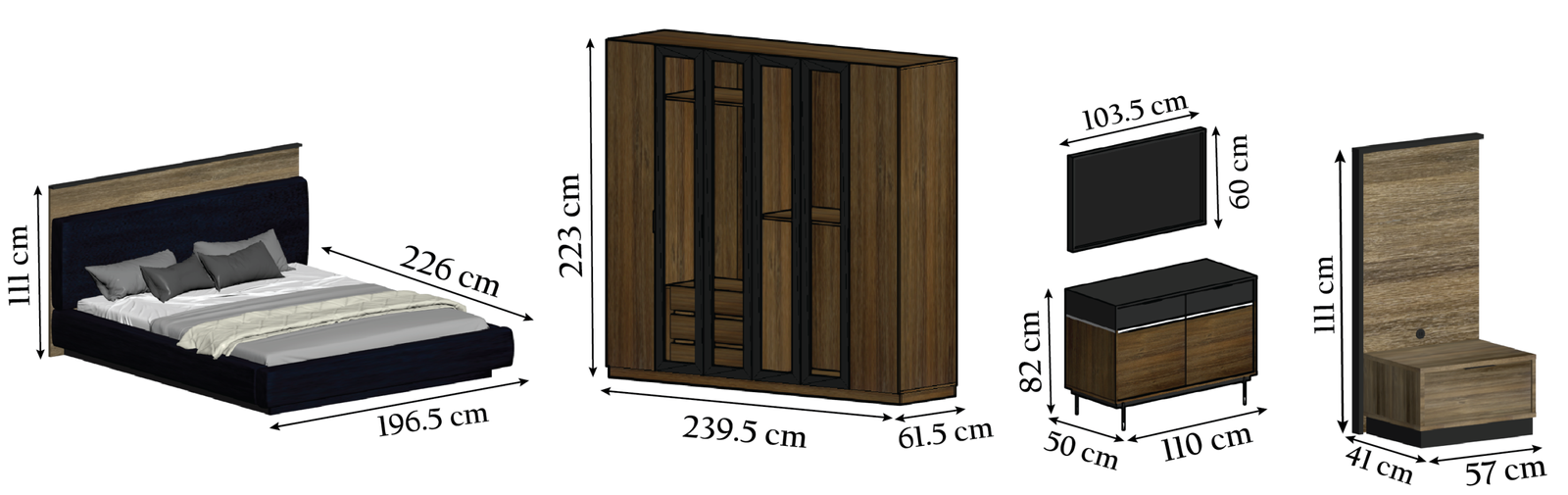 ° Wardrobe Size: W: 239.5 cm – D: 61.5 cm – H: 223 cm