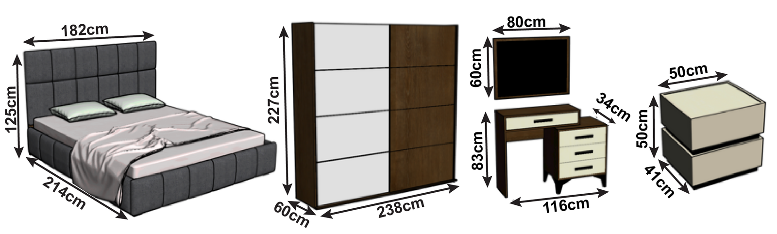 ° Bed Size: W: 182 cm – D: 214 cm – H : 125 cm