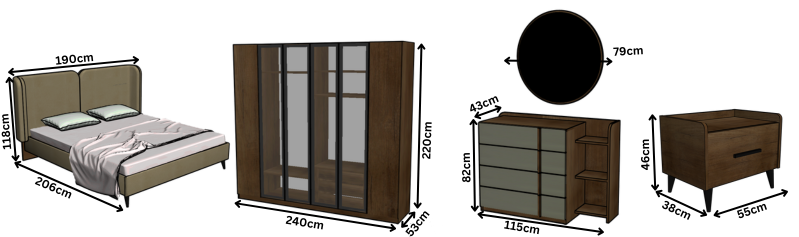 ° Bed Size: D: 206 cm – W: 190 cm – H : 118 cm