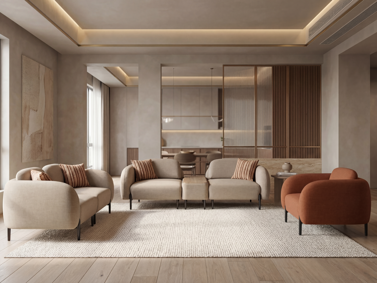 The Berlin Sofa Set: where minimalist design meets maximum comfort, creating an inviting...