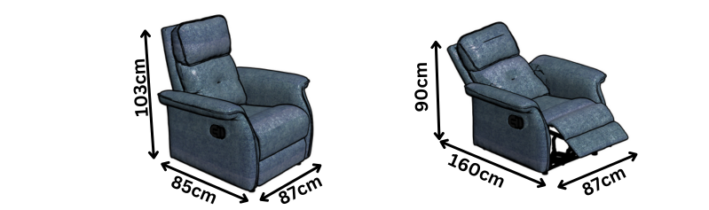 ° Recliner Open Size: W: 87 cm – D: 160 cm – H : 90 cm