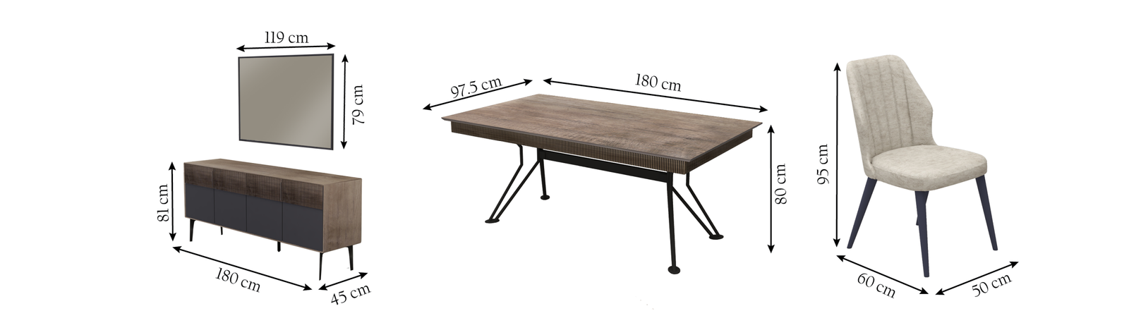 ° Buffet Size : W: 180 cm – D: 45 cm – H: 81 cm