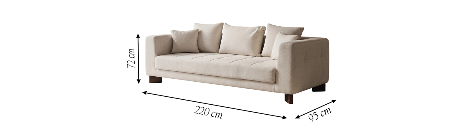 ° L: 220 cm – W: 95 cm – H: 72 cm