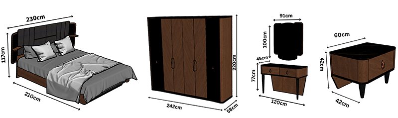 ° Bed Size: L: 210 cm – W: 230 cm – H : 117 cm