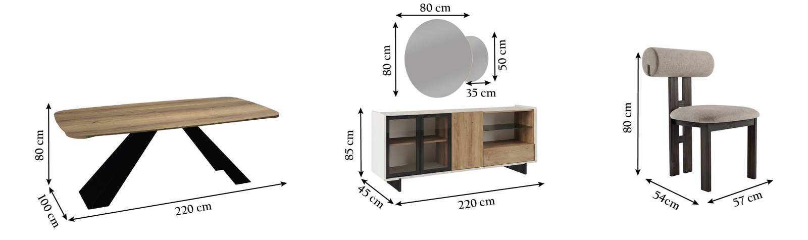 ° Buffet Size : W: 220 cm – D: 45 cm – H: 85 cm