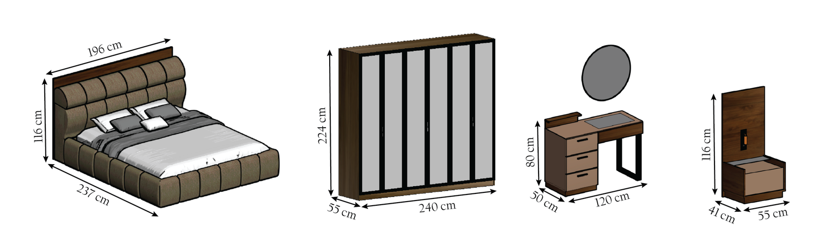 ° Bed Size: W: 196 cm – D: 237 cm – H : 116 cm