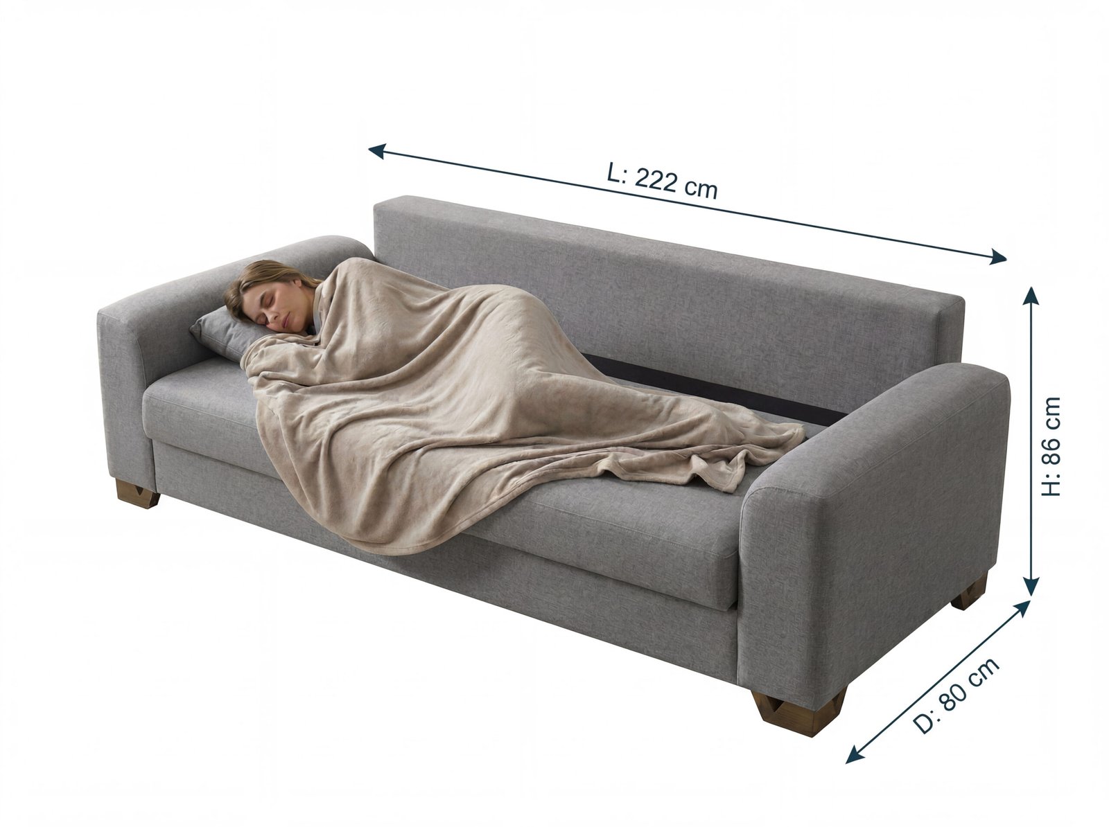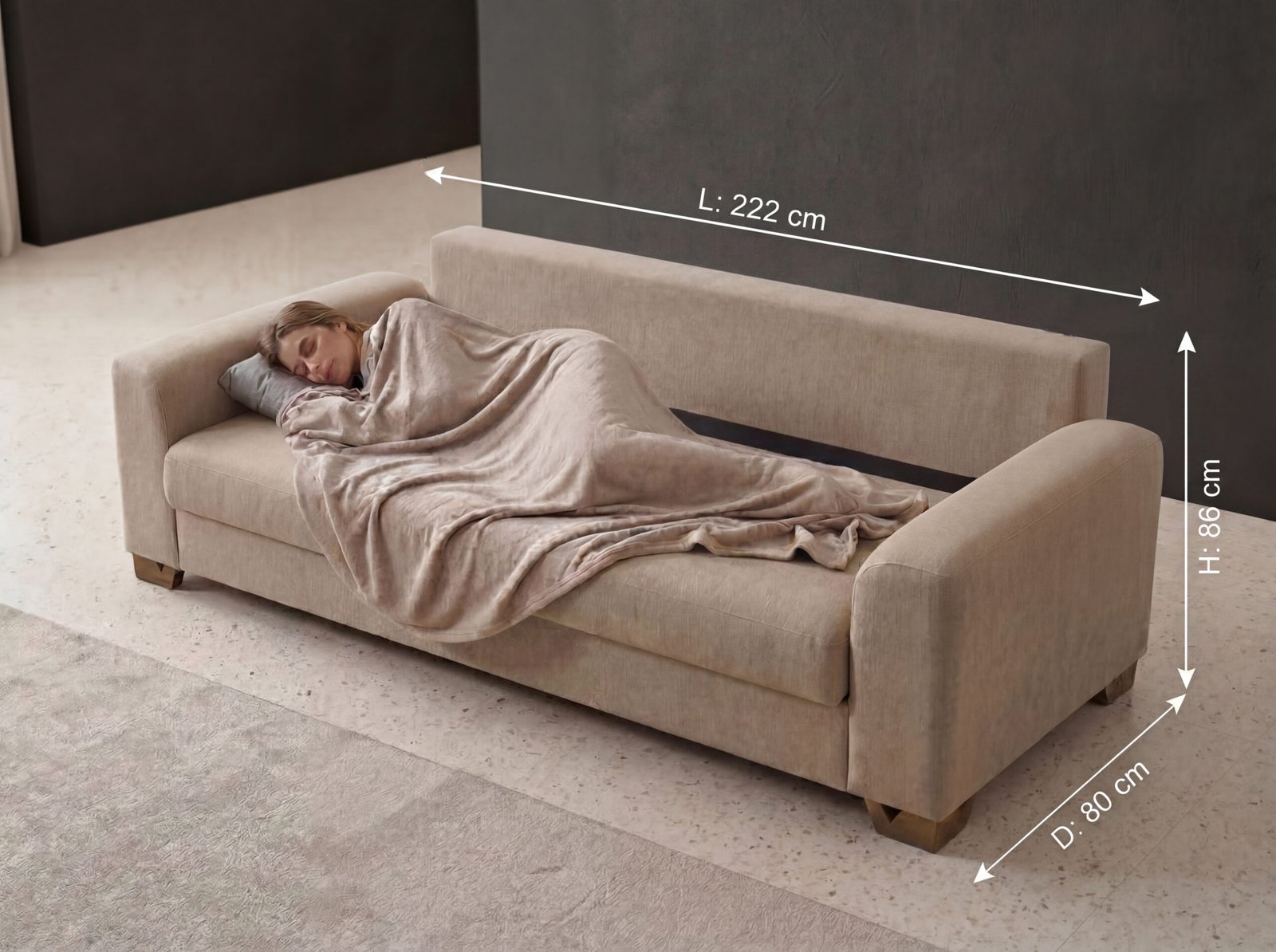 ° 3S Size: L: 222 cm – D: 80 cm – H: 86 cm