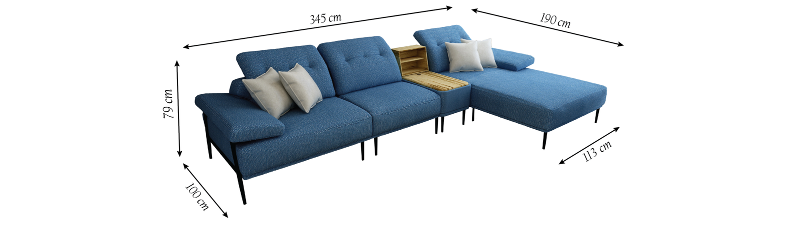 ° L: 345 cm – W: 190 cm – H: 79 cm