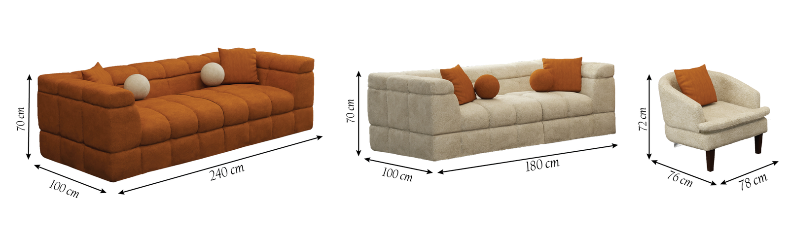 ° 3S Size: L: 240 cm – W: 100 cm – H: 70 cm