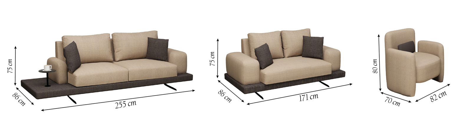 ° 3S Size: L: 255 cm – W: 86 cm – H: 75 cm