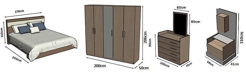 ° Bed Size: L: 179 cm – W: 200 cm – H: 110 cm