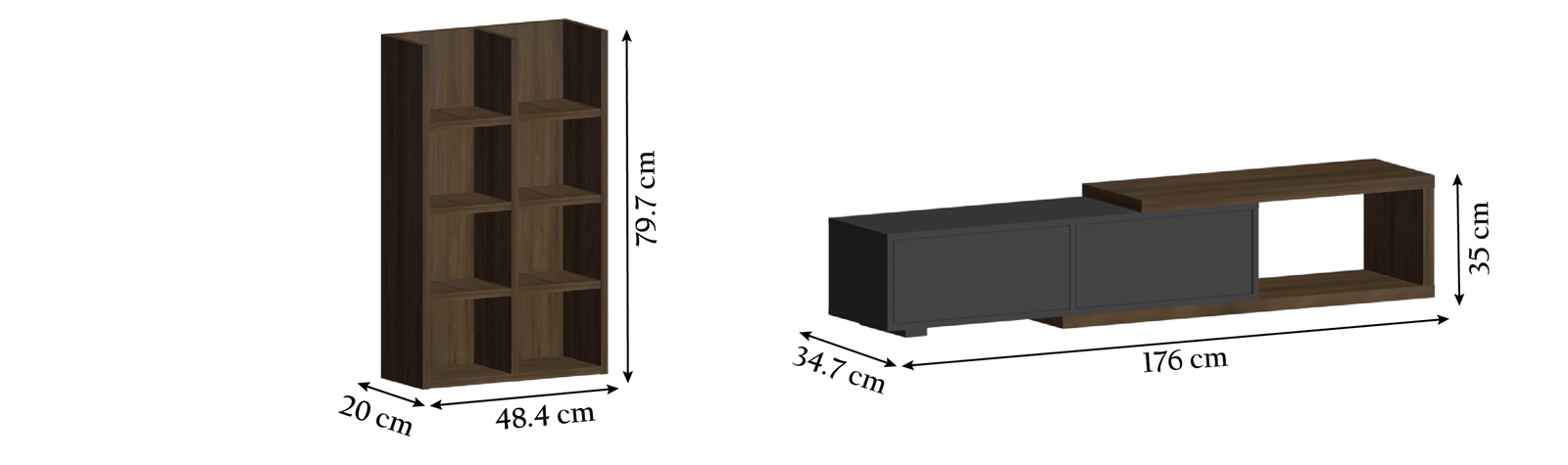 ° Size: W: 176 cm – D: 34.7 cm – H: 35 cm