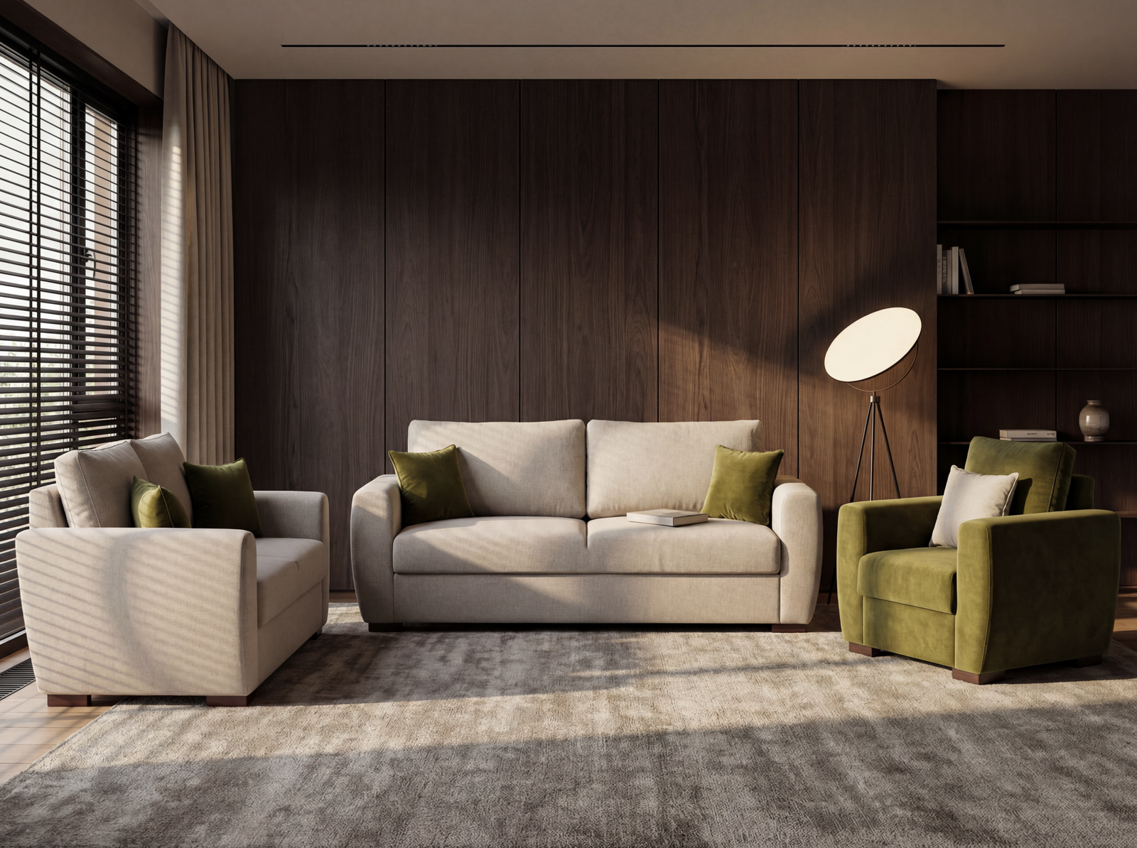 Experience ultimate relaxation with the Vionna Sofa Set, featuring a smooth reclining mechanism and modern design.